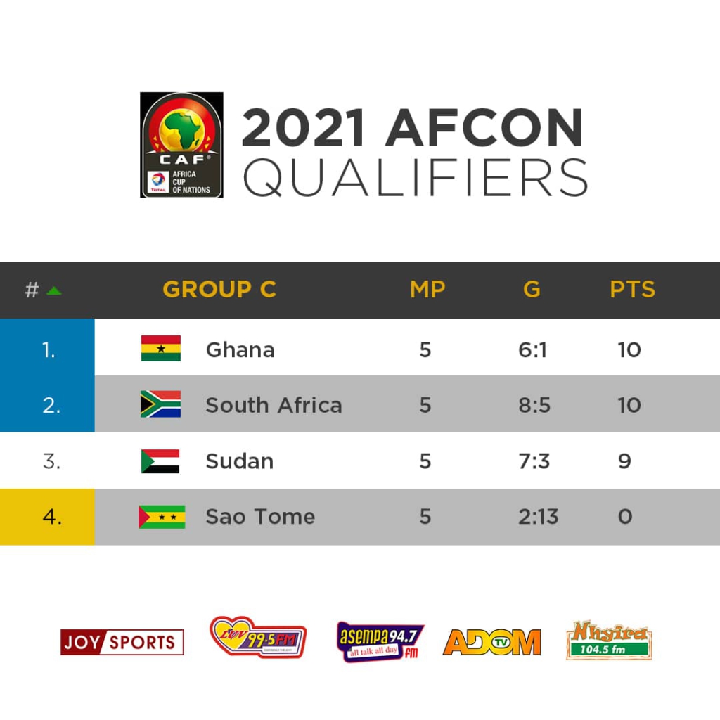 Ghana after the draw are through to the next AFCON which would be hosted in Cameroon in 2022 with a game in hand against Sao Tome and Principe which will be played in Ghana on the 28th of March.