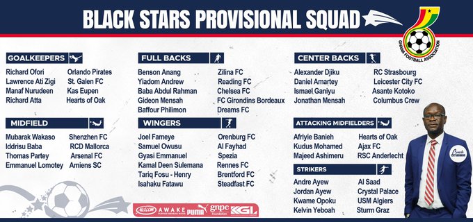 Ghana coach named a provisional 30-man squad for the 2022 FIFA World Cup qualification tournament that begins in September but that were just two Hearts of Oak players despite the remarkable season of the Phobians.