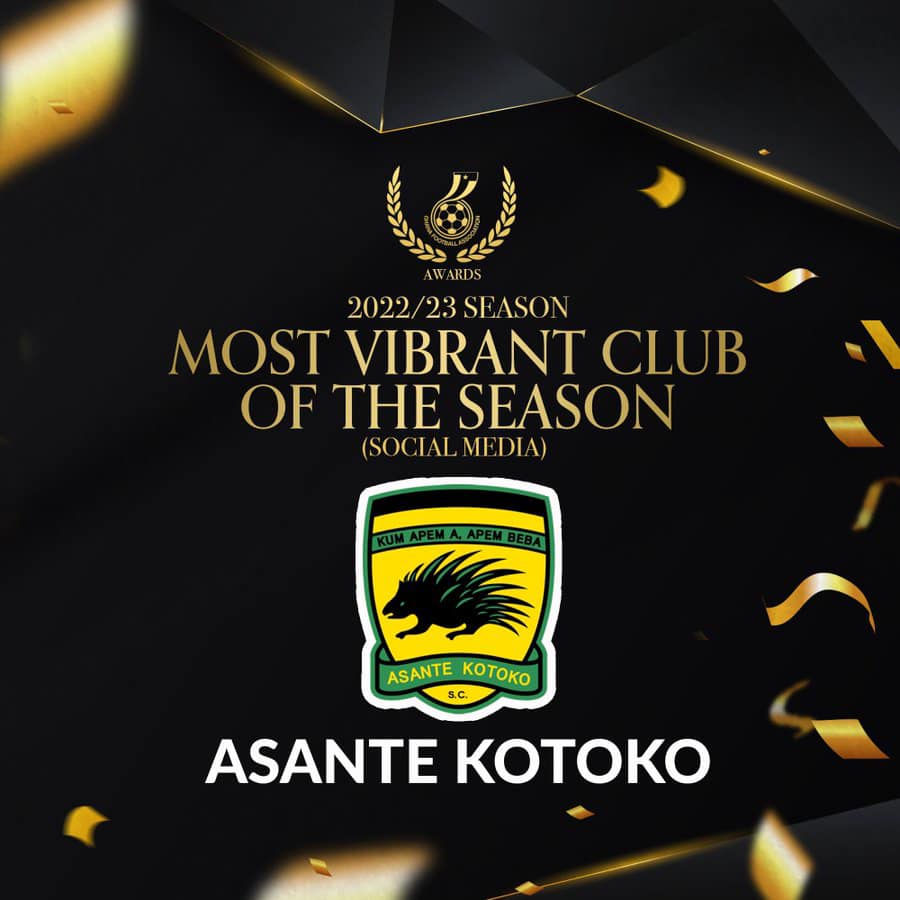 Asante Kotoko has been named the Most Vibrant Social Media Club of the Season at the Ghana Football Awards, recognizing their exceptional online presence and fan engagement.