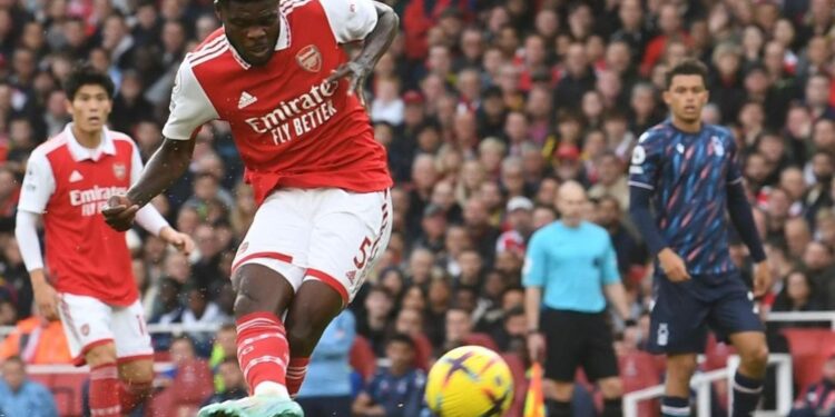 Deputy captain Thomas Partey scored a stunning goal for Arsenal when they dismantled Nottingham Forest 5-0 on Sunday afternoon.
