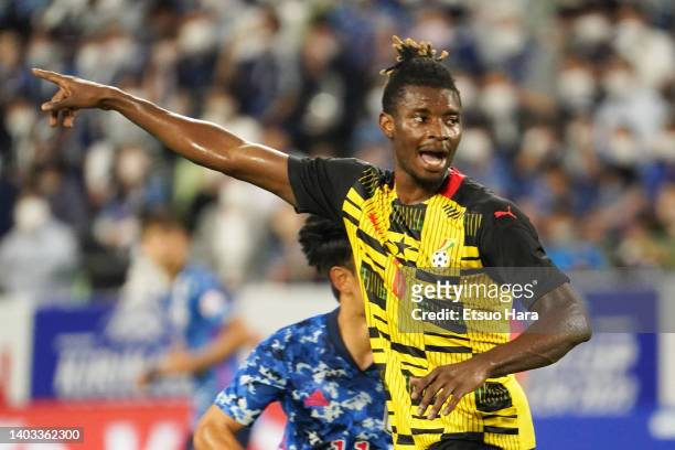 KOBE, JAPAN - JUNE 10: Edmund Addo of Ghana gestures during the international friendly match between Japan and Ghana at Noevir Stadium Kobe on June 10, 2022 in Kobe, Hyogo, Japan. (Photo by Etsuo Hara/Getty Images)