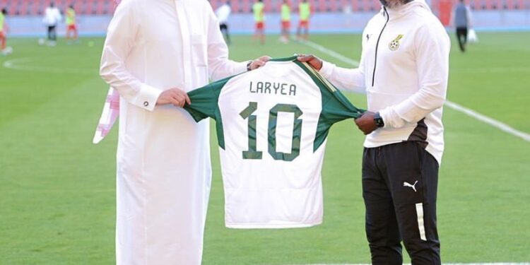 Former Ghana star player, Laryea Kingston have been handed over a special jersey by the Saudi Arabia Football Association on Friday afternoon.