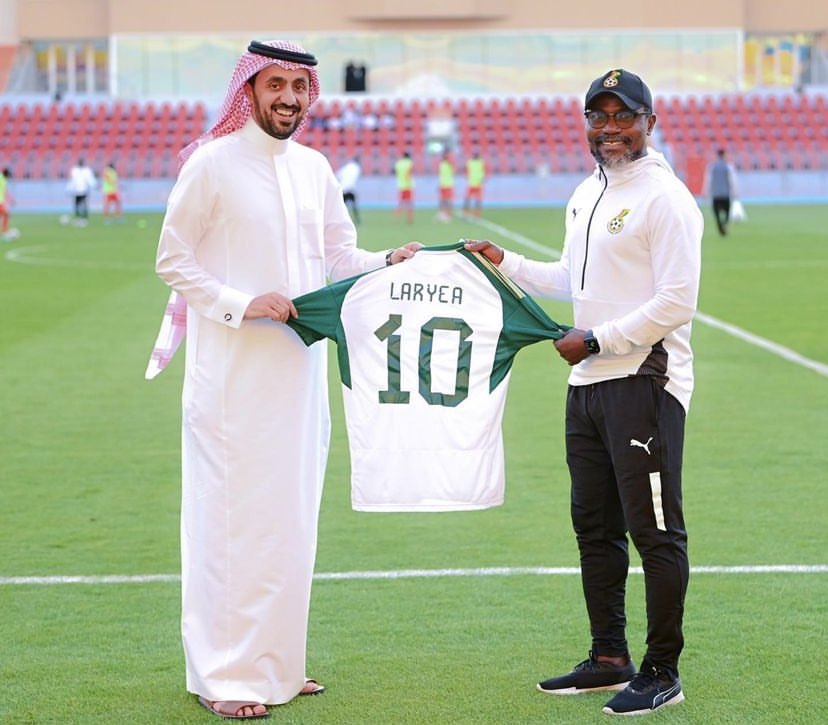 Former Ghana star player, Laryea Kingston have been handed over a special jersey by the Saudi Arabia Football Association on Friday afternoon.