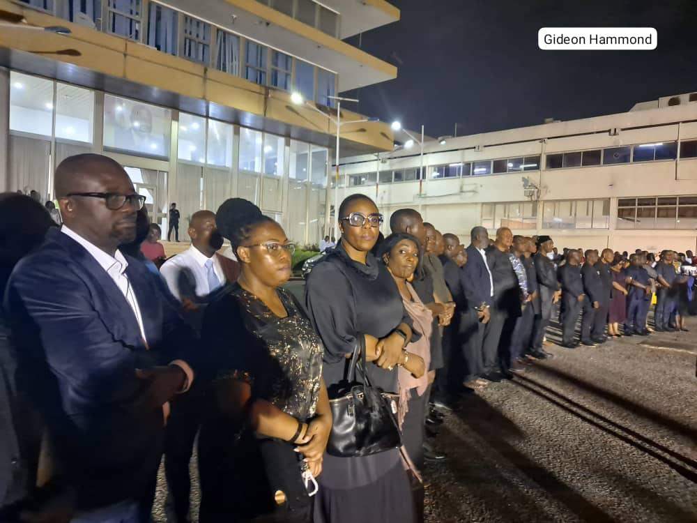 GFA President Kurt Okraku joined government officials, political party representatives and the family to receive the mortal remains of the late former Sports Minister E.T Mensah.