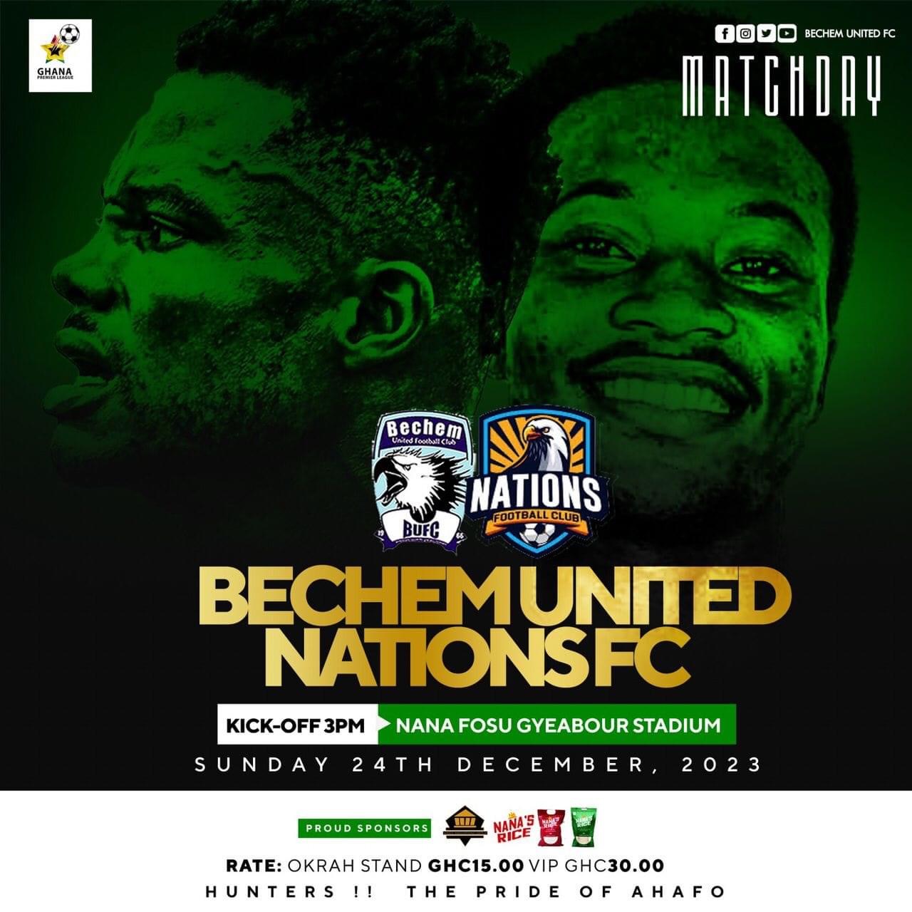 Bechem United is gearing up for a face-off against Nations FC at Fosu Gyeabour Park, aiming to bounce back from their recent 1-0 loss to Aduana FC, which ended their impressive 10-game unbeaten run.