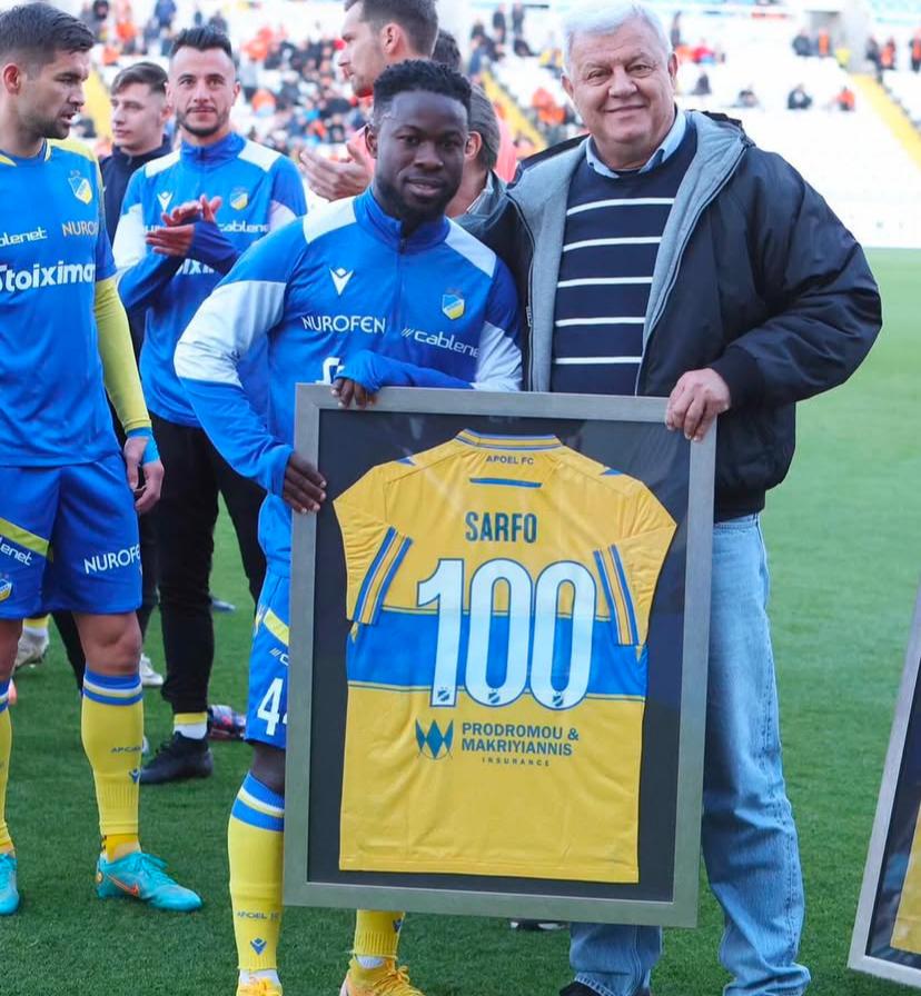 Ghanaian winger Kingsley Sarfo has been celebrated by his club, APOEL Nicosia, after reaching a major milestone—his 100th appearance for the team.