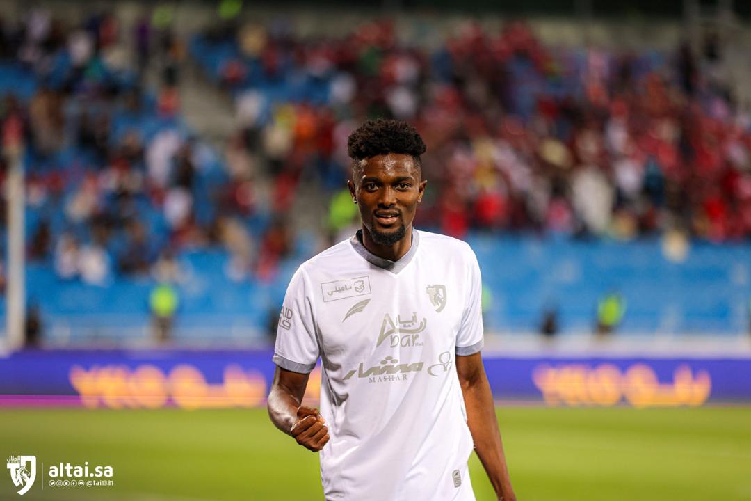 Ghanaian midfielder Bernard Mensah scores for Al Taee in the Saudi Pro League on Friday evening at Al Riyadh.