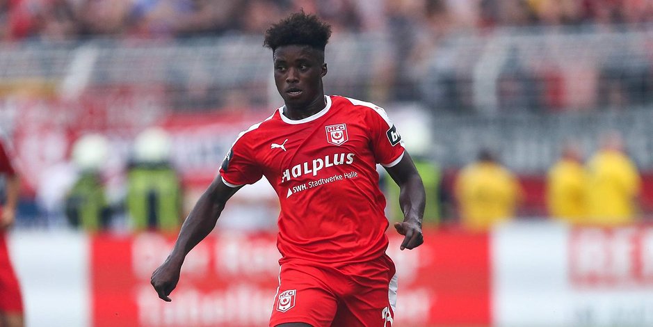 Ghanaian youngster Braydon Manu suffered a tibia injury and had to be stretchered off in Hallescher FC’s 1-0 win at bottom club Aalen in the German third-tier.