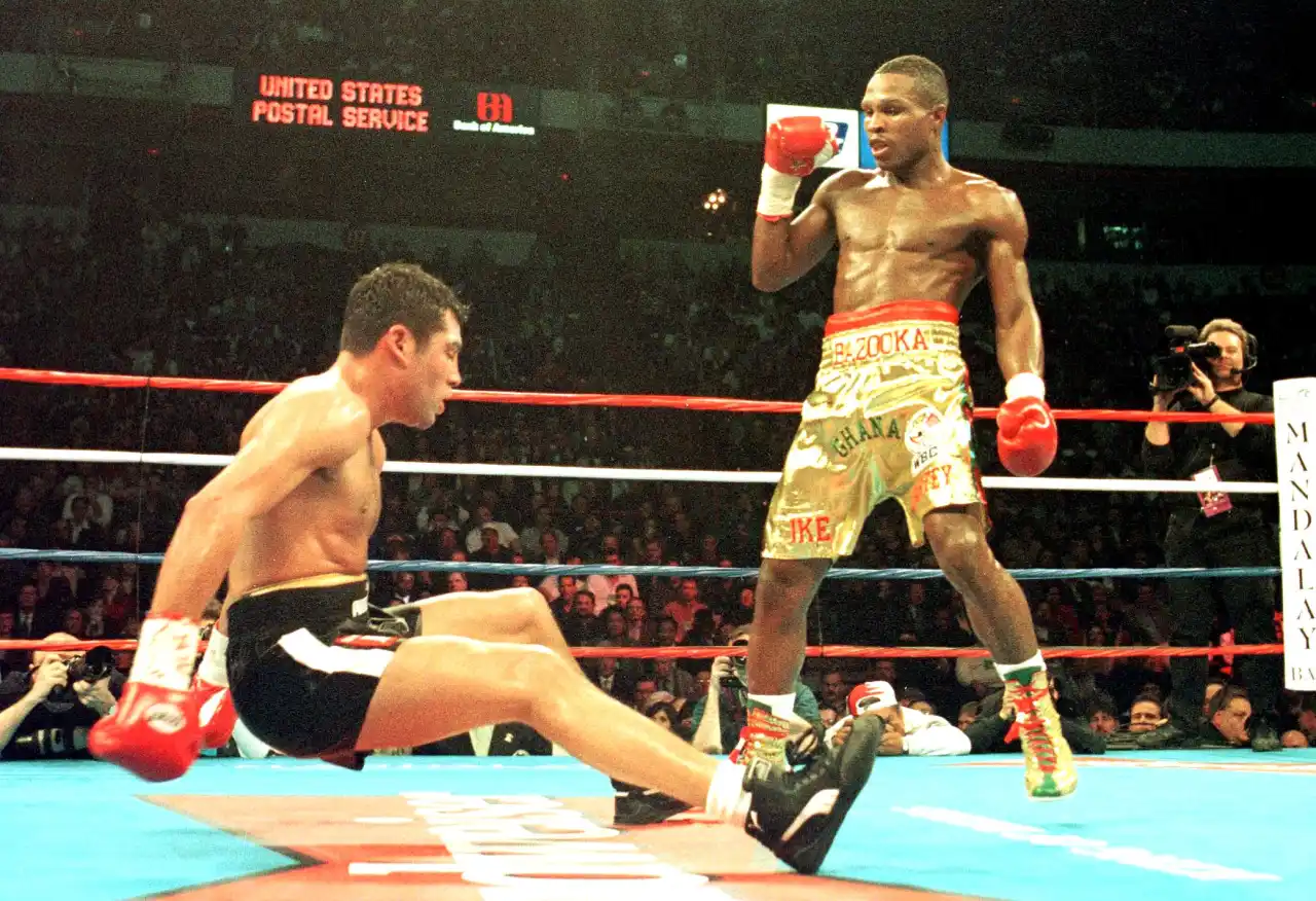 Their encounter in 1999 was a thrilling back-and-forth battle that showcased the resilience of both fighters. Quartey sent De La Hoya to the canvas in the third round with thunderous left hooks, but ‘The Golden Boy’ rallied and reciprocated by knocking Quartey down in the sixth round. The drama continued with both fighters hitting the canvas, and in the final round, De La Hoya secured a second knockdown, nearly finishing Quartey. The judges awarded De La Hoya a split decision, allowing him to retain his WBC welterweight world title.