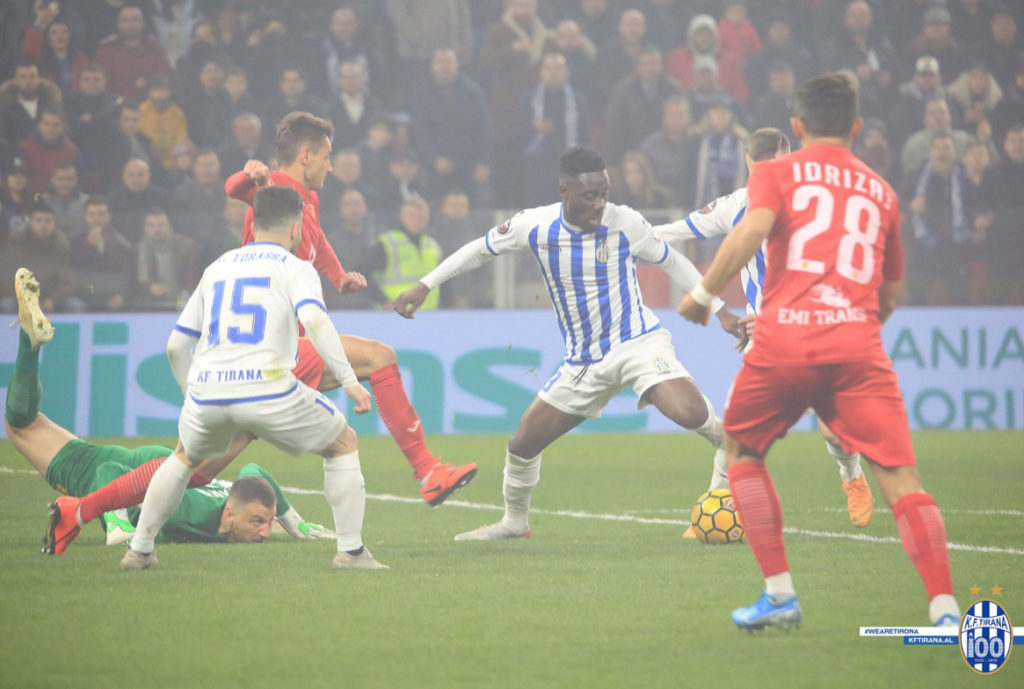 The Ghanaian international netted the second on the night three minutes to full time to hand Tirana a well deserving 2-0 away win at Flamurtari.