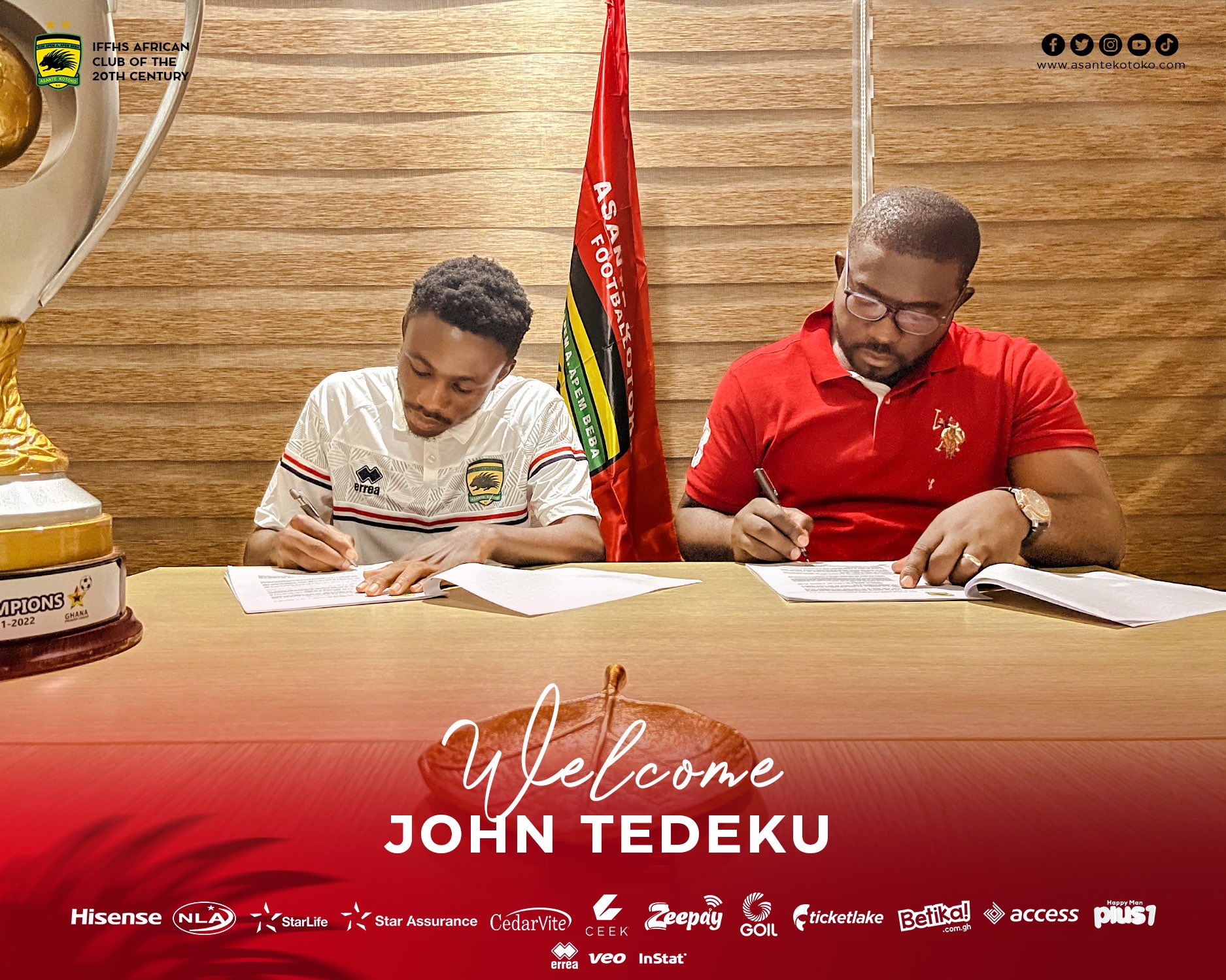 Ghanaian giant Kumasi Asante Kotoko SC have officially confirmed the signing of West African Football Academy (WAFA) SC graduate John Tedeku.