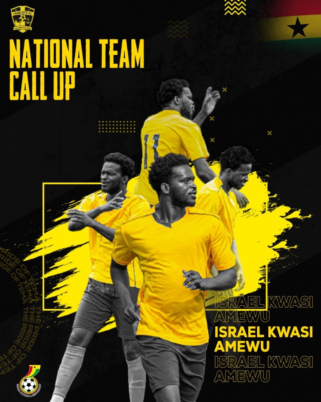 The Tema City FC player’s talent, has caught the attention of the Black Satellites’ Technical team and has, thus, been given opportunity to report to the Technical Centre at Prampram on Wednesday, March 22, 2023 for further observation.