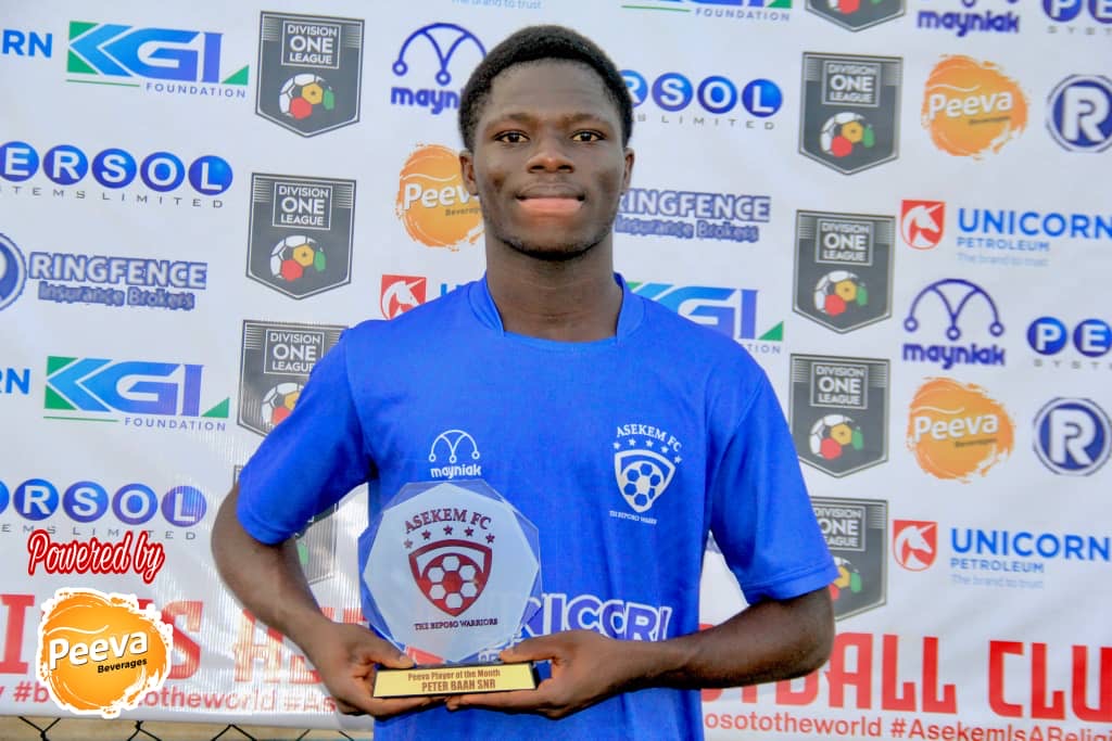 Asekem Football Club has named their talented young goalkeeper, Peter Baah Snr. as the Player of the Month for September.