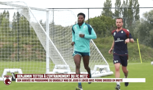 Recrue du @FCMetz, Benjamin #Tetteh était à l'entraînement à Frescaty ce mercredi. De la course au programme pour l'avant-centre ghanéen. Il ne manque plus que l'officialisation du club ! #Mercato pic.twitter.com/vzkXLQEam9