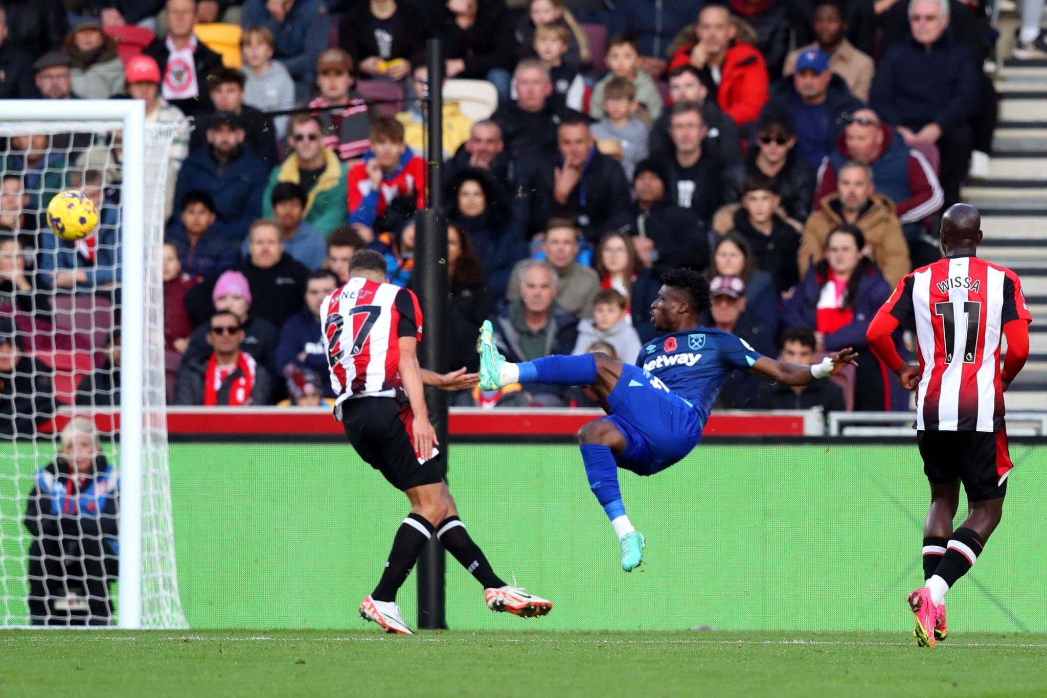 Ghana international Mohammed Kudus scored a stunning overhead kick in the first half of the Premier League game between Brentford and West Ham United.